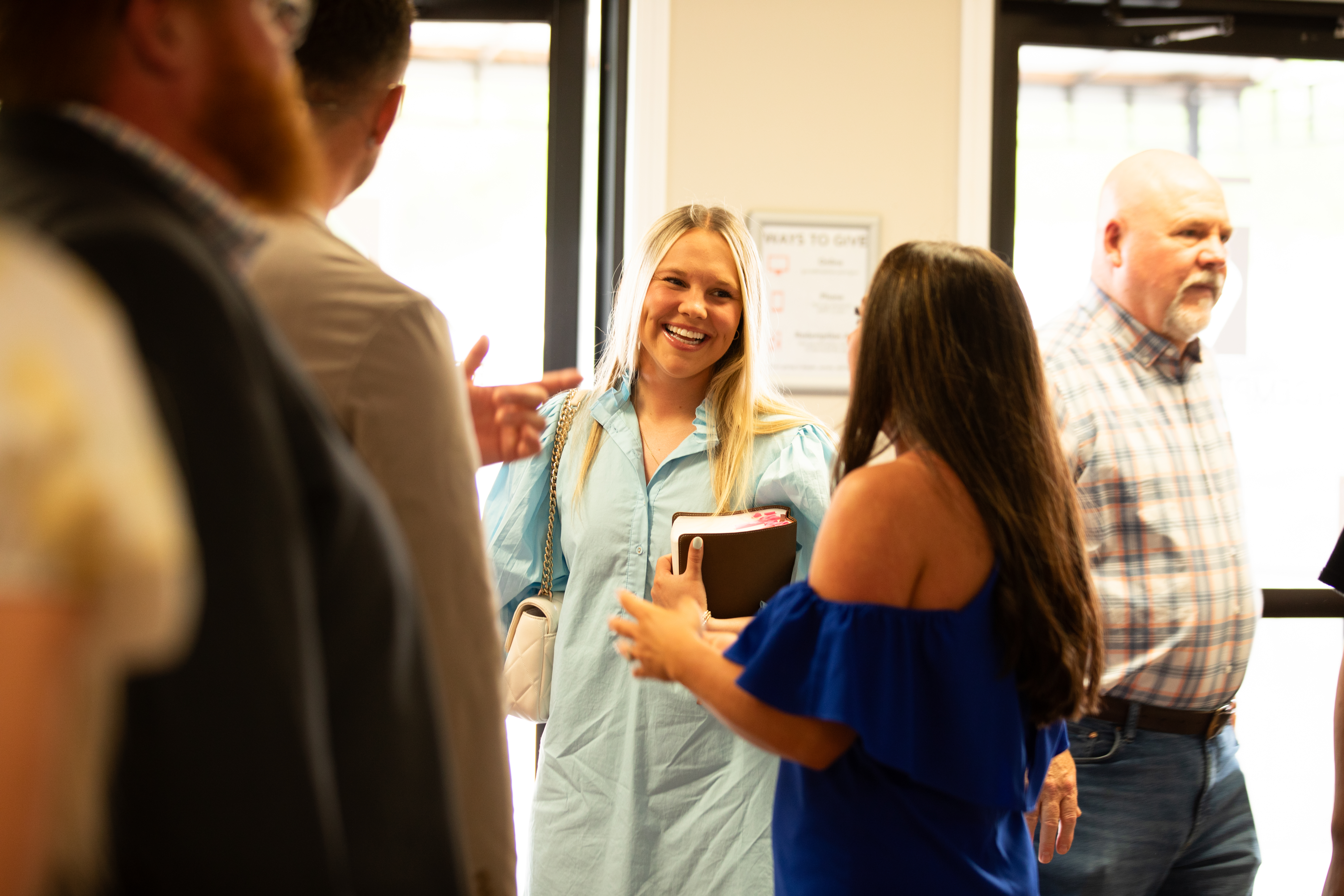 Bringing yourself is more than enough! We've got the coffee and snacks covered, and you're welcome to take those into the worship center with you. You'll notice some people like to bring a Bible or notebook with them, but it won't be weird if you don't. We've got Bibles available for you to take home, or you can download the free Bible app on your phone.