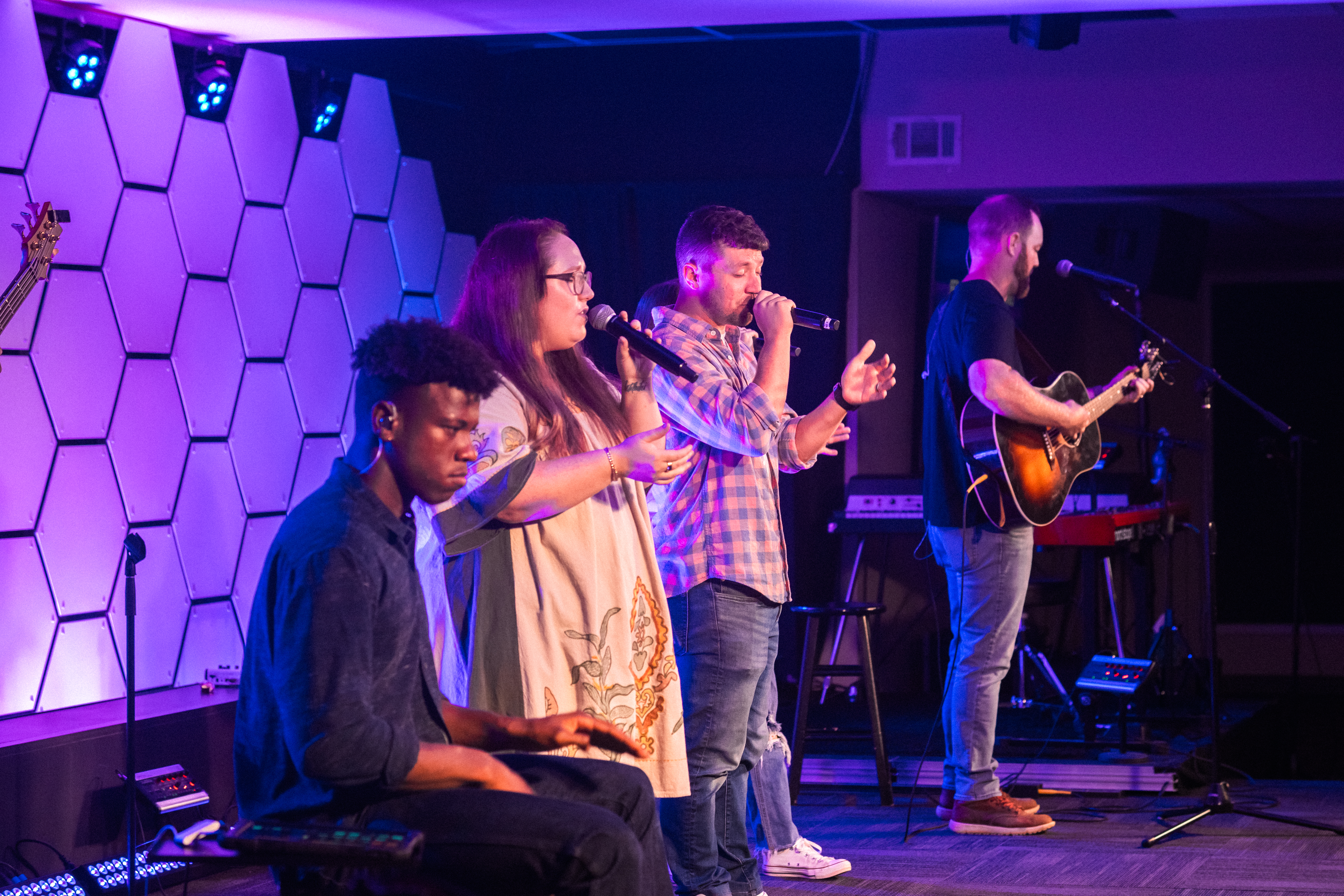 At Redemption Church, we have live music every weekend! We play modern, high-energy worship songs along with reflective, powerful moments of praise. You'll be invited to sing along, but you can participate however you're comfortable!